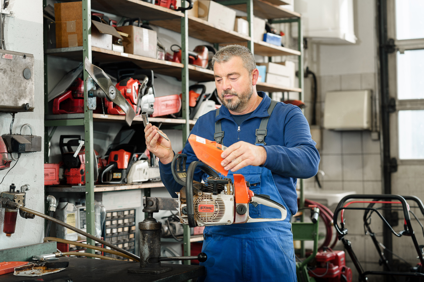 Wir bieten Kundendienste, Wartung, Fehlerdiagnose und Instandsetzung von Geräten aller Art namhafter Hersteller. Partner sind wir insbesondere von Stihl, Solo, Herkules, Kärcher, Agria, AS-Mäher und Stiga. Für Stihl und Solo verfügen wir auch über umfassende Möglichkeiten zur Steuergerätediagnose. Besonderen Wert legen wir auf kompetente, transparente und wirtschaftliche Beratung. Wir glauben, eine Reparatur muss sich lohnen. Vor allem für dich.